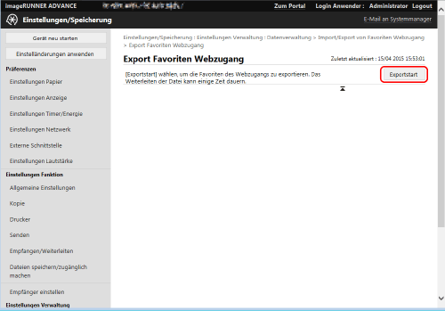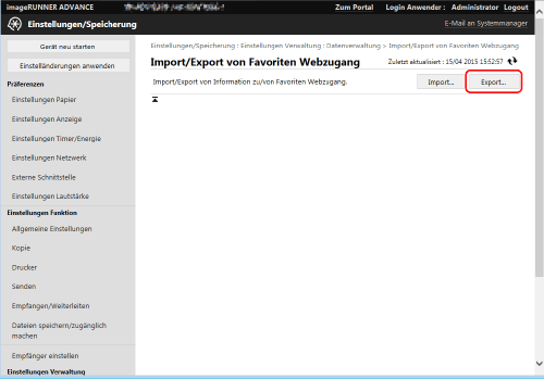Klicken Sie auf [Favoriten Webzugang] für [Individuell importieren/exportieren].