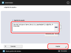 Pulse el campo de entrada de texto [Agente de usuario] → introduzca la opción deseada de [Agente de usuario] → pulse [Aceptar].