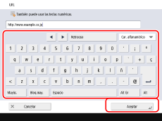 Para obtener instrucciones acerca de la introducción de caracteres, consulte "Guía de usuario". En función del área de introducción de la página web, es posible que el campo de texto asociado al teclado se muestre con varias líneas de entrada. En función del tamaño de la página web o las imágenes, la página web puede no mostrarse correctamente o puede aparecer un mensaje de error. En función del tamaño del archivo, es posible que algunas animaciones GIF tarden algún tiempo en cargarse. Si hay abiertas varias ventanas, éstas no se diferencian, por lo que las URL se guardan en el orden en que se introdujeron. |