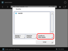 Puede añadir las páginas web visitadas con frecuencia al Menú rápido. Las páginas web guardadas en el Menú rápido se muestran como botones en la pantalla del Menú rápido. Al añadir una página web al Menú rápido, puede acceder fácilmente a la página web.