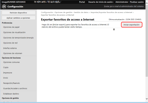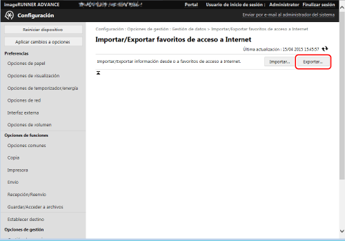 Haga clic en [Favoritos de acceso a Internet] para [Importar/Exportar individualmente].