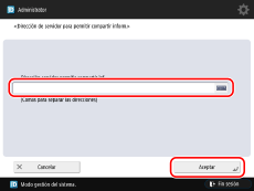 Pulse [Seguridad] → [Dirección servidor permitir compartir inf.].
