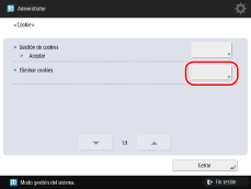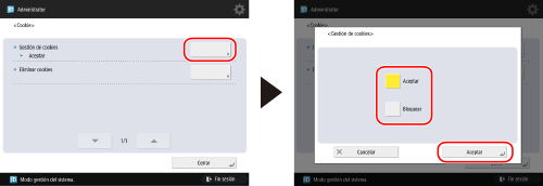 Pulse [Gestión de cookies] → seleccione si se recibirán cookies → pulse [Aceptar].