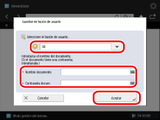 Los archivos PDF que no pueden imprimirse debido a las opciones de Adobe Acrobat, no pueden guardarse en un buzón. Si no se ha especificado una contraseña de documento para el archivo PDF seleccionado, no es necesario introducir la contraseña del documento. Después de guardar un archivo PDF con una contraseña en un buzón, el archivo se convierte en un documento sin contraseña. Para enviarlo como un archivo PDF con contraseña, deberá volver a especificar la contraseña. Si se ha establecido un PIN para el buzón seleccionado, se mostrará la pantalla para introducir el PIN para el buzón. Para confirmar si se ha guardado el archivo, compruebe el contenido del buzón que seleccionó como destino de almacenamiento. Si desea introducir la Contraseña de documento, introduzca la contraseña correcta. Si la contraseña no es correcta, el archivo no se guardará en el buzón. El número del Buzón, el número del documento y la contraseña del documento establecidos al guardar un archivo PDF en un Buzón se borran al abrir un nuevo archivo PDF. Sin embargo, estas opciones no se borran si pulsa [Actualizar] para actualizar la página que se está mostrando en ese momento. |