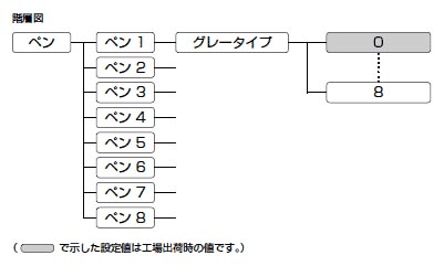 グラフィックス・プロッターの8種類のペンの色に対応するグレーの濃淡を設定します。