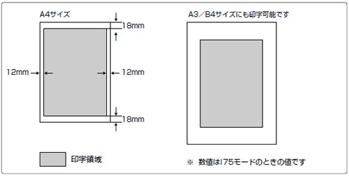 ただし、A3、B4サイズの用紙を使用しても、A4サイズのときと同じ縮小率で印字され、用紙のほぼ中央にレイアウトされます。