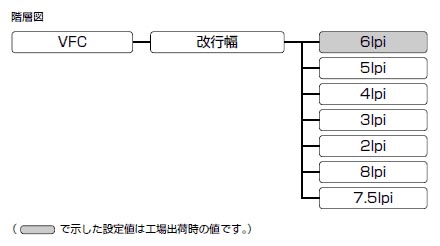 改行ピッチを設定します。改行ピッチは、1インチ幅に印字する行数(lpi)で設定します。