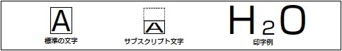![]() | サブスクリプト文字で印字できるのは、パイカ、コンデンス、エリート、プロポーショナル文字(1バイトコード文字)に限ります。 |