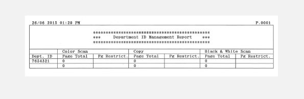 When Department ID Management is enabled, you can print a report to check the total number of pages that were copied, printed, and scanned for each Department ID. The report enables you to monitor usage and improve management.