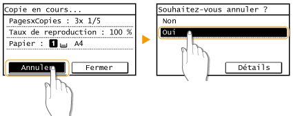 Appuyez sur <Annuler> sur l'écran qui apparaît au cours de la copie