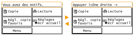 Si <Vous avez des notifs.> ou <Appuyer icône droite ->> s'affiche