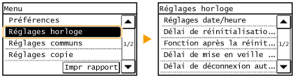 Vous pouvez modifier un grand nombre de réglages relatifs à l'affichage tels que la vitesse de défilement ou la langue d'affichage. Pour en savoir plus à ce sujet :