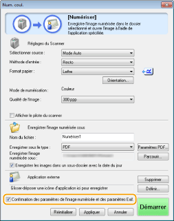Si vous avez sélectionné le bouton [PDF] à l'étape 1, cochez [Confirmer l'image numérisée].