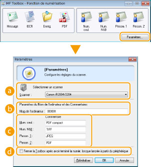 Configuration des réglages pour MF Toolbox et le scanner