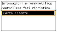In alcune situazioni quando si verifica un errore, vengono visualizzate le istruzioni su come risolverlo. Seguire le istruzioni visualizzate sullo schermo per risolvere il problema. La schermata visualizzata di seguito mostra un esempio di errore dovuto a inceppamento della carta (