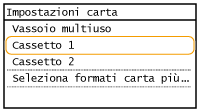 Se l'impostazione non corrisponde a formato e tipo della carta caricata, può verificarsi un errore di stampa o inceppamento della carta.
