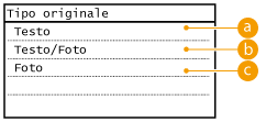 È possibile selezionare la qualità dell'immagine ottica per la copia in base al tipo di documento, ad esempio, documenti di solo testo, documenti con grafici o foto di riviste.