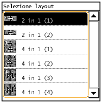 , ma i bordi del documento potrebbero non venire copiati in caso di aumento.<2 in 1>/<4 in 1> non è disponibile quando si utilizza <Cancellazione bordi>, <Originali di formato diverso>, <Libro