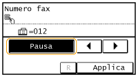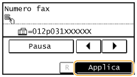 Toccare <Pausa> per inserire una pausa al termine del numero di fax se necessario.