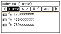 Visualizza le destinazioni con nomi dei destinatari che iniziano con le lettere corrispondenti a quelle della scheda selezionata.