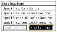 Se si spegne la macchina o si imposta <Restrizioni nuove destinazioni> su <On> si eliminano le ultime destinazioni disattivando questa funzionalità. Limitazione delle destinazioni disponibili (imageRUNNER 2204F)
