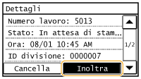 Le destinazioni disponibili per l'inoltro sono limitate alle destinazioni registrate nella Rubrica. Se non vi sono destinazioni registrate, registrare destinazioni nella Rubrica prima di utilizzare questa funzionalità.