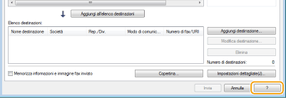 Facendo clic su [?] nella schermata del driver fax, viene visualizzata la schermata della Guida in cui sono visibili informazioni non presenti nell'e-Manual, comprese le funzionalità del driver come la registrazione delle impostazioni utilizzate più spesso e come configurare tali funzionalità.