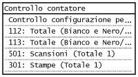 In base alle impostazioni definite dal rivenditore autorizzato Canon, è possibile che il seguente contatore non sia visualizzato o che sia visualizzato un contatore non presente nel seguente elenco.