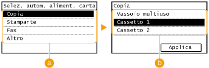 ). La selezione automatica del cassetto è sempre abilitata per la stampa su fogli alimentati dal vassoio multiuso.