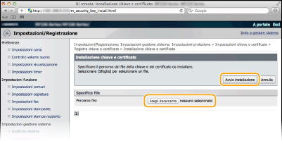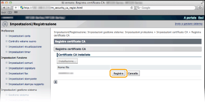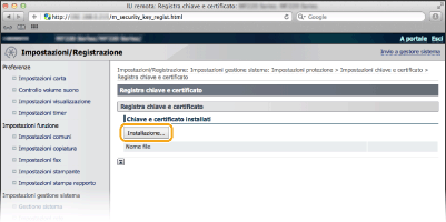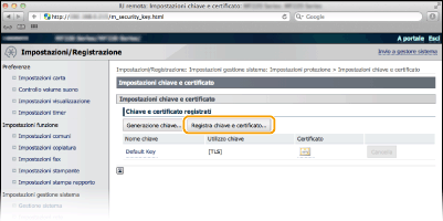 Fare clic su [Registra chiave e certificato] o [Registra certificato CA].