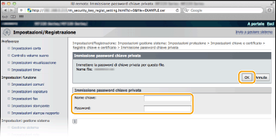 Specificare il nome della coppia di chiavi e la password, quindi fare clic su [OK].