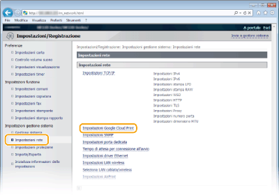Attivare la funzione Google Cloud Print della macchina. È anche possibile disabilitare la funzione Google Cloud Print della macchina.