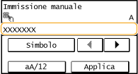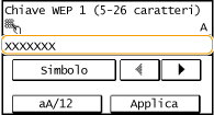Immettere la chiave di rete utilizzando i tasti numerici, quindi toccare <Applica>. Immissione di testo