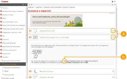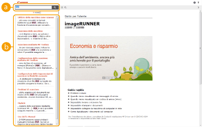 Fare clic per visualizzare informazioni su come visualizzare l'e-Manual, come effettuare una ricerca e altre informazioni.