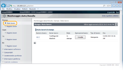 È possibile eliminare un lavoro facendo clic su [Annulla].