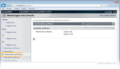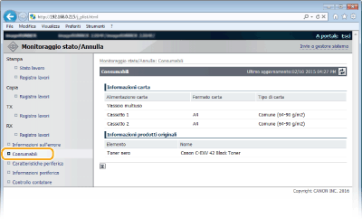 È possibile anche fare clic su [Verifica dettagli consumabili...] nella Pagina portale (pagina principale) per aprire la schermata dei materiali di consumo.