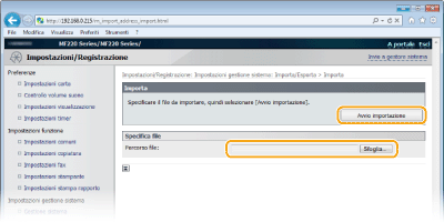 Non utilizzare la macchina durante il processo di importazione/esportazionePrima di esportare/importare, accertarsi che non siano in corso operazioni come la stampa di documenti.
