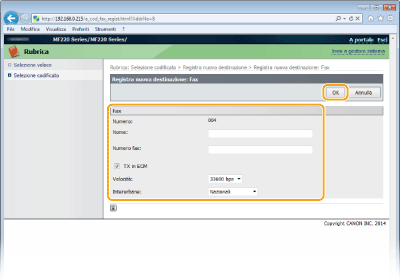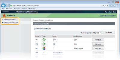 Registrazione della Rubrica dalla IU remota (imageRUNNER 2204F)