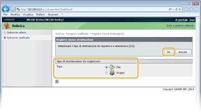 Selezionare [Tipo di destinazione da registrare] e fare clic su [OK].