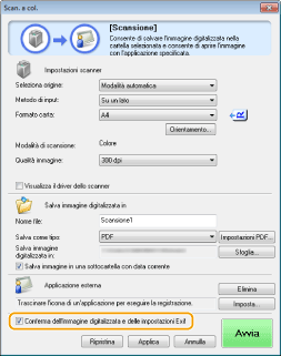 Selezionare la casella di controllo [Conferma dell'immagine digitalizzata e delle impostazioni Exif].
