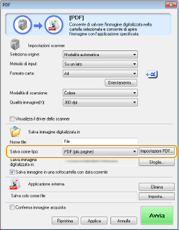 Se si seleziona [PDF (Aggiungi pagina)] per [Salva come tipo] (