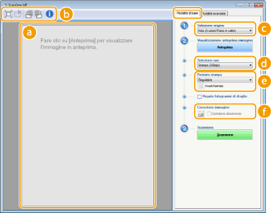 sullo schermo e fare clic su [Scansione]. In questo modo è possibile configurare le impostazioni di base e la scansione.