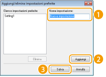 Immettere un nome in [Nome impostazione] e fare clic su [Aggiungi]