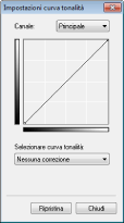 La curva di tonalità è una linea curva che indica i livelli di luminosità e contrasto dell'immagine prima e dopo la regolazione. Selezionare una curva di tonalità registrata per regolare i livelli di luminosità e contrasto dell'immagine.