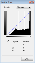I risultati di tutte le regolazioni effettuate alle impostazioni di luminosità, contrasto (  ), istogramma (  ) e curva di tonalità (  ) sono visualizzate in una curva di tonalità come valori numerici. Eseguire un controllo finale delle impostazioni di colore.