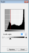 * Il valore di soglia è il confine che separa se un colore sia rappresentato come bianco e nero. I colori sotto un determinato livello di densità sono rappresentati come bianco e quelli sopra un determinato livello di densità sono rappresentati come nero.