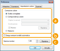 È possibile visualizzare il documento con il livello di luminosità corretto specificando il valore gamma dello schermo del computer che visualizza l'immagine digitalizzata. Questa impostazione è applicata se si seleziona [Colore] o [Livelli di grigio] per [Modalità colore].