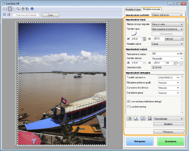 Configurazione delle impostazioni di scansione in Modalità avanzata