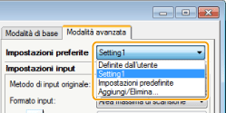 Immettere un nome per le impostazioni da registrare. Utilizzare un nome che sia facile da reperire nell'elenco a discesa.