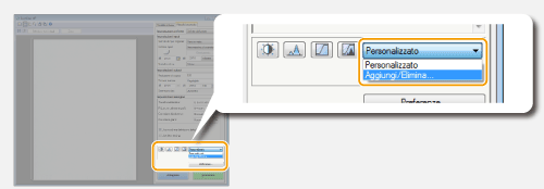 Se si seleziona [Aggiungi/Elimina], sarà possibile aggiungere nuove impostazioni per il formato stampa ed eliminare le dimensioni aggiunte.